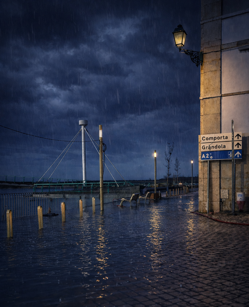 Homes, restaurants, pharmacies, businesses — all the places that lived off that stretch by the river, off the beauty of the Sado and the light that falls there at the end of the day — were now under water.